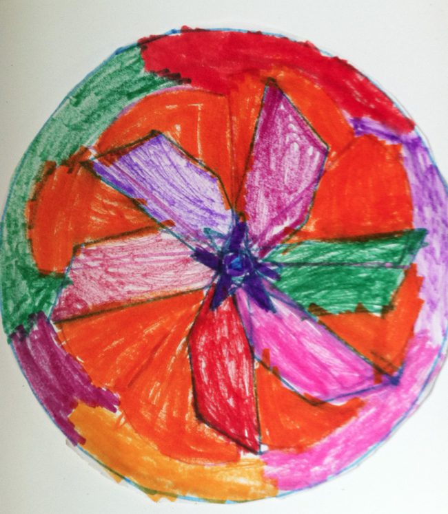 Activity- Students brainstorm things that can be measured besides time (i.e. love, silliness, fun, weather). Students then create mandallas for the ‘clock’ face, using a homemade spiral graph tracer system. Students fill in all their symmetrically designed shapes with marker until the white of the paper is covered. Students create the ‘hands’ for the clock and attaché the clock hands with a brass fastener.